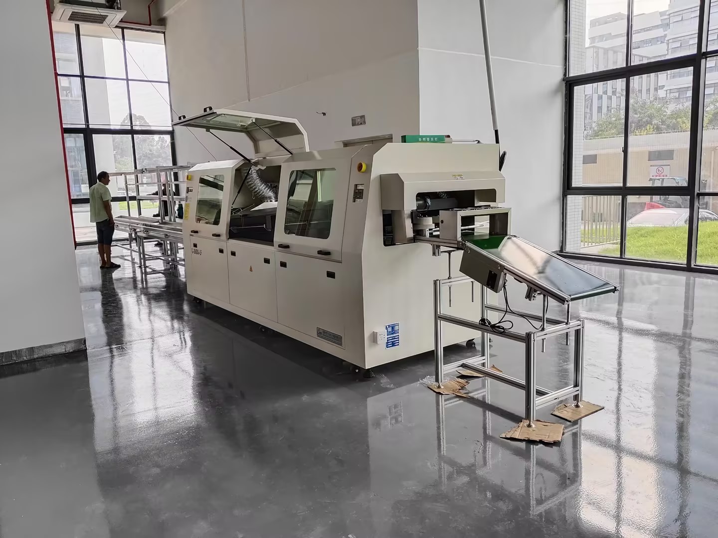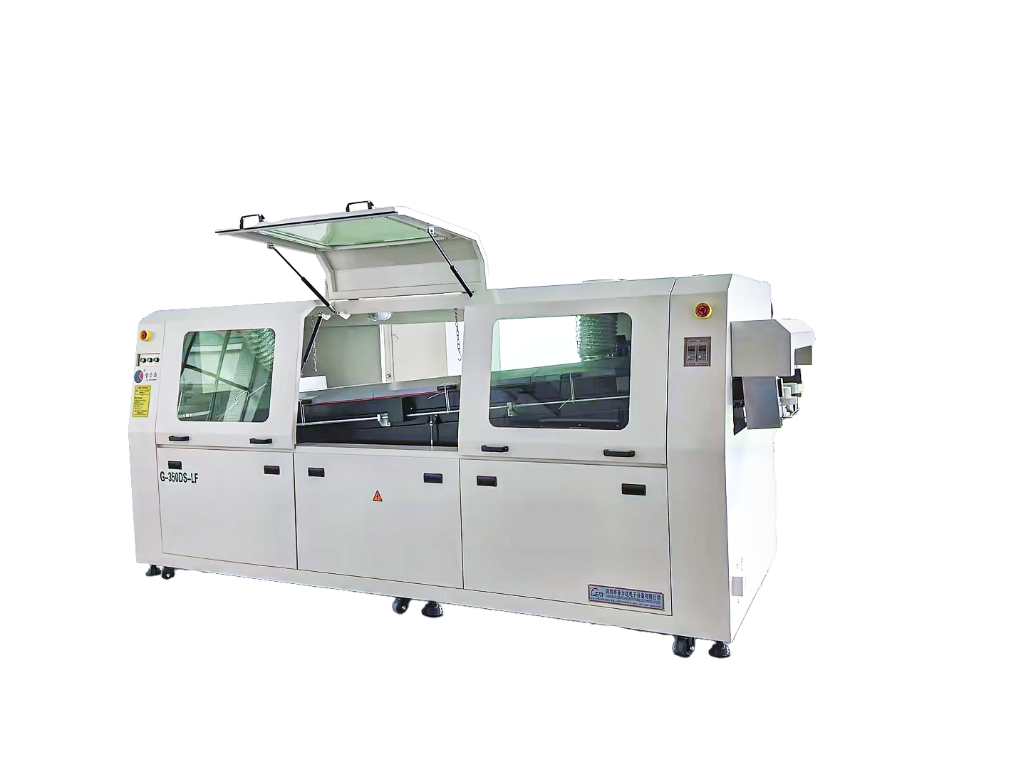 ● 三段式1.5米超長熱風(fēng)預(yù)熱均勻迅速抬高PCB板溫度,快卸直拉式設(shè)計,維護(hù)方便