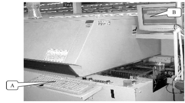 A :為回流焊的操作鍵盤(pán),機(jī)器的基本操作和機(jī)器參數(shù)的編寫(xiě)與修改都是通過(guò)鍵盤(pán)來(lái)實(shí)現(xiàn)的。