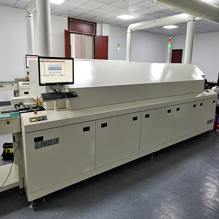 延長(zhǎng)再流區(qū)梯形溫度曲線。在控制最高再流溫度的同時(shí),增加再流區(qū)溫度曲線寬度,延長(zhǎng)小熱容量元器件的峰值時(shí)間,使大小熱容量的元器件均達(dá)到的要求的回流溫度,并避免小元器件的過熱。