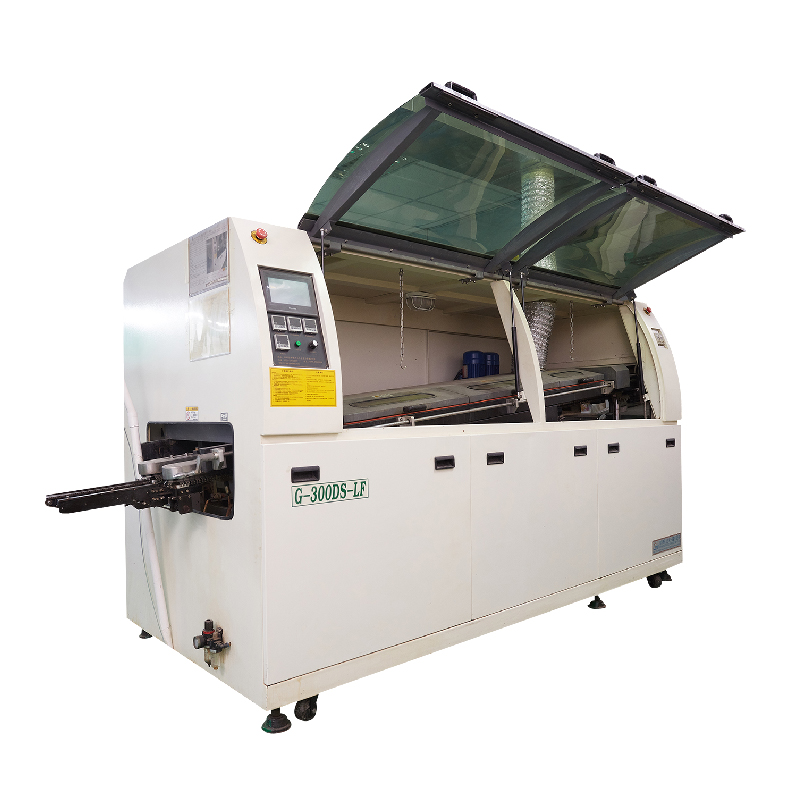 波峰焊錫機(jī)的焊接表面與高溫液態(tài)錫直接接觸。材料為錫銀銅合金,溫度的設(shè)定也是焊料的熔化階段。波峰焊錫機(jī)是使插板的焊接表面直接與高溫液態(tài)錫接觸,從而達(dá)到焊接的目的。高溫液態(tài)錫保持一定的坡度,液態(tài)錫通過特殊裝置形成類似于波浪的通道,因此波峰焊錫機(jī)的主要部分是波浪焊接爐。