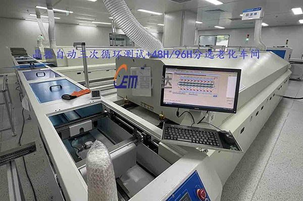 下圖為惠倫晶體重慶分公司自動測試+老化線,實際模擬晶振產(chǎn)品在經(jīng)過自動上板進入三次回流焊烘烤后產(chǎn)品是否存在可靠性問題,并經(jīng)由視覺掃碼分選進入后端48H和96H老化爐,出口自動收板,達到客戶晶振每月產(chǎn)能60000K(拍攝照片經(jīng)由客戶同意)